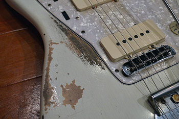 INORAN:2011年秋にフェンダーからサプライズで白いジャズマスターをプレゼントしていただいたんですが、そのときから、#2はハードレリックにしたいですねっていう話はしていましたね。やっぱりギターは使い込んだ感じがカッコいいなっていうのがあるので。俺は絶対、キラキラしたギターはムリですね(笑)。