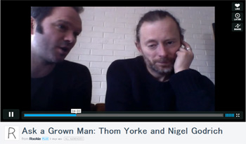 トム・ヨークはレディオヘッドのプロデューサーで、アトムス・フォー・ピースのバンド・メイト、ナイジェル・ゴッドリッチと一緒にティーンエイジーの女子向けのサイトRookiemag.comの“Ask a Grown Man(大人に訊け)”コーナーに出演。