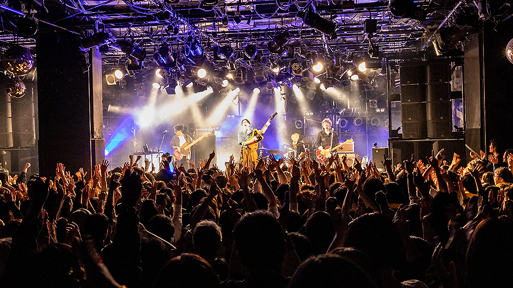 さきほどまでの柔らかい空気から一転、緊張感あるビリビリとしたダイナミックなロックを魅せてくれたDOES。「S.O.S.O」で1曲目から爆発音をぶっ放していく。赤塚ヤスシの滑らかでいて太いベースがオーディエンスを躍らせる「シンクロニズム」、軽快なビートが特徴の「ナイスデイ」と淡々と突き進む楽曲陣。さらに新曲「ブラック・チェリー」を披露。氏原ワタルの声が渋さを増し煙がたゆたうような、気だるげなスローなテンポの中に近寄りがたい沸々とした血がたぎる力強い楽曲は、薫り高く色気すら感じさせる。今年結成10周年を迎えた彼ら、7曲目「今を生きる」でタイトルと同じく声高らかにバンドの進化を宣言すると、1stシングル「明日は来るのか」を披露。過去、現在、そしてこれから…。ブレもなく、進行形で突き進んでいる姿は力強い。終盤に向け、「バクチ・ダンサー」で森田ケーサクのドラムがより迫力を増し、最後の新曲「殺伐とラブニア」まで激しいビートをオーディエンスに浴びせまくり、全10曲をハイスピードで突き進んでいった。