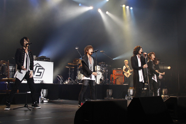 ステージ前半部には、メンバーの自己紹介を兼ねた、個々の個性を歌った「ROOT FIVE」。アタック感の強いリズム曲「Break It Out!」。マイク・スタンドを用いたダンスも魅力的だった「Blowback」のよう、会場を一体化してゆくアップビートな楽曲を軸に構成。シングルとしても発売された、哀愁さや、5人の色気を持った声の魅力を味わえた「三日月姫」と「Love Doctor」では、大勢のファンたちが、揺れる感情のままに響き渡る声色に酔いしれていた。