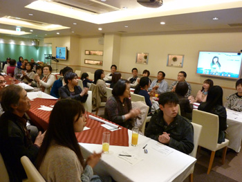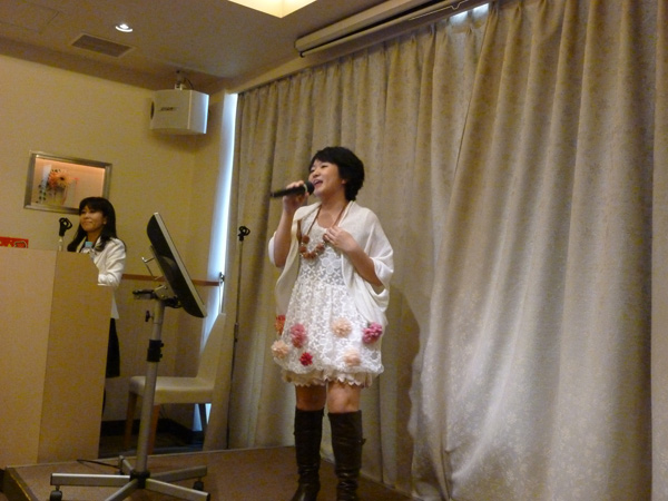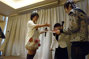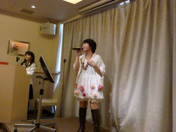 さくら本人の歌唱指導にリードされて、ファンも一緒に、♪んーんーんーんー、んんんんんーーーーっとビブラートの大合唱(笑)。和やかな雰囲気で会場が包まれるなか、ファンからはさらに「カラオケの得点のとり方を教えて下さい」との質問が。