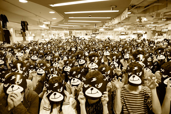 “ライブ中はpasくん(仮称)のお面をお客さんが着用する”という企画のため、開場と共に店内ライヴスペースはpasくん(仮称)で溢れかえり、入りきれないお客さんを含めた400名近い人がフロアで歓声を送った。