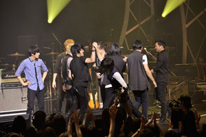 両バンドのファンが共に拳を振り上げ、演奏しながらメンバー同士が肩を抱き合って、歌い終えるとガッチリ握手を交わす。そんな感動的な光景を目にして、今日の“国を超えて絆を結ぶ”というテーマが単なる理想ではなく、実現可能な目標なのだということを確信することができた。そこで最も効果的な媒介となるのが音楽であるのは言うまでもない。音楽を通じて世界を繋ぎ、地球を守る――。人類共通の夢が、いつの日か叶うことを心から祈りたい。