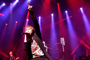 後半戦では、そのエナジーをフィジカルでも迸らせ、「戀愛ING」では場内から“L O V E!”の大合唱が。さらに、怪獣(G)がギターソロを狂おしくかき鳴らし、愛するが故に手放す男の包容力が心に沁みる「溫柔」を客席が共に歌う。各メンバーソロとコール&レスポンスでヒートアップさせたメドレーに、ラストの「離開地球表面」に到るとスクリーンに現れる“JUMP”の文字に合わせてフロント陣がジャンプ! ロックのアグレッションは大前提に、皆で歌えるキャッチーなメロディラインが際立たせるストレートなメッセージ性こそ、彼らの大きな武器である。それは中国語の歌詞と共に映し出されていた日本語の訳詞により、この日、日本人オーディエンスの心をも、しっかりと揺り動かした。これがワールドツアーをも行う中華圏モンスターバンドの底力なのである。