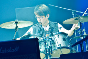 本イベントの趣旨を訴えるビデオに続き、ステージに現れたのはMayday。本国では数万人クラスのアリーナライブが中心のMaydayが、キャパシティ3500のホールで観られるとあって、海外からも多くのファンが来場。ロビーでは中国語が飛び交い、客席のそこかしこでは青いサイリウムも振られていたが、そんな熱烈なファン心理も圧倒的なライブパフォーマンスを見れば即座に納得できた。ソリッドなギターが牽引する骨太なロックチューンに、何よりボーカル・阿信の鋭い目がいい! そこに灯る確固たる意志の炎に惹き込まれ、アッパーな「孫悟空」での幕開けから、ハッピーな「終結孤單」、ファルセットも交えて妖しい「雌雄同體」と、多彩かつ芯の太い歌声とサウンドにすっかり魅了されてしまう。