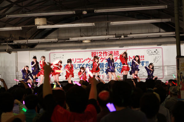 SHIBUYA ekiatoは東横線旧渋谷駅舎跡地を期間限定イベントスペースとして開放しているもの。かつて東横線の電車が発着していた長大なホームが今回のライブの舞台ということで、会場にはモーニング娘。を応援する2000人近くのファンが来場した。