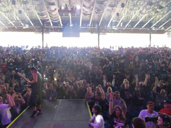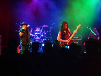 そして5月。アメリカで行なわれた<M3 Rock Festival>に招かれた。2012年にも出演しているが、そのときはサブ・ステージでのライヴだった。しかしステージ直後、フェス側から「2013年はメイン・ステージに出てほしい」と早々にオファーも受けていた。その言葉どおり2013年はメイン・ステージで約45分のライヴを行なった。これが凄まじい盛り上がりで、メンバーは確かな手応えも得たという。またバックステージでは、ブラジルで共になったトゥイステッド・シスターらと親交をさらに深めたり、樋口宗孝のソロ・アルバムにも参加したキングスXのタイ・テイバーとの再会もあった。