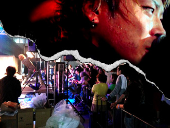 <Ozzfest>日本初上陸を祝福する雄叫び、そして圧巻のハイトーン・ボイスが響き渡る特設ステージ前は、いつのまにか黒山の人だかり。最終的には、本編開始前&午前中にも関わらず国籍問わずなんと約3000人もの観客が集結し、メロイックサインを高々と突き上げながら大合唱が巻き起こる。前述の通り、かつては渋谷の街角を狂乱の渦に巻き込んだ<勝手にデスボイスコンテスト>が、ついには“伝説”のフェス、<Ozzfest>の会場をも席巻してしまうとは…。