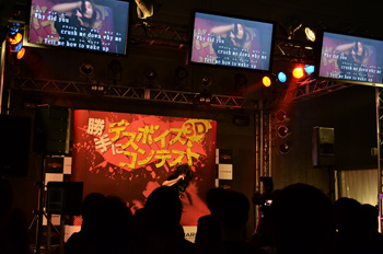 デスメタル、ラウド系、メロデス、ブラックメタル、デスコア、などなどなど…この攻撃的なナンバーの数々のカラオケを収録しているDAMの楽曲ラインナップ数も凄いが、常人では歌唱超困難な楽曲達を見事に歌いきってしまうデスボイス愛好家のパフォーマンスはさらに凄い。イベント両日のMCを務めた鮎貝健とともに2日間ゲストとして登場したTHE冠の冠徹弥も、「これ、飽きないですね! キャラクターのオンパレード!」と絶賛しまくり。そんな出演者達の中から、特にインパクト強烈だった場面をいくつかピックアップすると…。