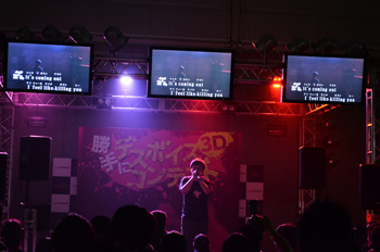 <勝手にデスボイス・コンテスト>は、第1回目と第2回目はWEB上でのコンテストとして行われ、2012年1月にはWEB上から飛び出した“3D”形式としてリアルイベントを開催。なんと、あのギャルの聖地・渋谷109前にモッシュピットを巻き起こす前代未聞の盛り上がりをみせたことが記憶に新しい。そして、デスボイスで歌った楽曲をDAM★とも動画または、DAM★とも録音での応募の中から選出された精鋭陣が、<Ozzfest>日本初上陸への祝福の意も込めて幕張メッセに集結! デスボイスを炸裂させることはもちろん、まさに“勝手に”自分の好きな音楽を好きなスタイルで楽しみ尽くしてOK、「音楽を愛し、とにかく楽しく歌う人を心から応援する」がテーマのハッピーコンテストを超ハイテンションに盛り上げた。