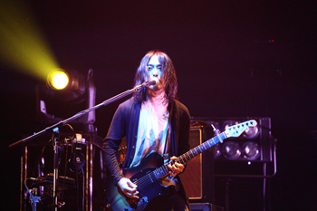 チケットはソールドアウト。2万人を飲み込んだ巨大なホールに漂うざわめきと、10~20代を中心とした行儀の良い音楽ファンがかもし出す空気は、ライヴというよりフェスのそれに近い。そんな、やや雑然とした空気を一気に引き締めたのが、アクアリウムをモチーフとしたイマジネイティヴなオープニング映像と、それに続いて鳴り響いた「INORI」の爆音だった。メンバー5人がPCを前に並列するクラフトワーク・スタイルで、サウンドはキックの四つ打ちを基調とした強力なダンスミュージック。そのまま「ミュージック」へと雪崩れ込み、中間部のブレイクでビートが途切れたかと思うと、次の瞬間に全員が楽器を手にしてバンド演奏に引き継がれるという「早替わり」に大歓声が湧く。ダンスミュージックとバンドサウンドとの接点で刺激的な音を作り出してきた、サカナクションならではの鮮やかな演出だ。