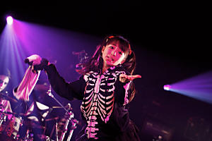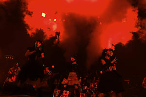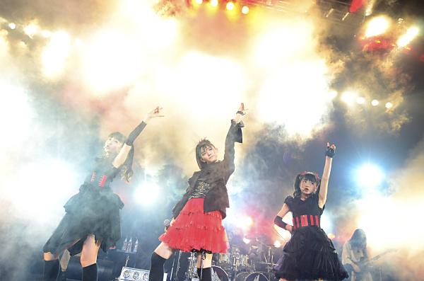 小悪魔的な歌詞とヒップホップ要素を織り交ぜた、YUIMETALとMOAMETALの「おねだり大作戦」、スポットライトが照らされ、黒いマントをひるがえすSU-METALの正統派メタルなソロ曲「紅月-アカツキ-」。「ヘドバンギャー!!」ではYUIMETALとMOAMETALが霧吹きバズーカをもち、上手から下手まで勢いよく煽る。そして「ウ・キ・ウ・キ★ミッドナイト」、ラストの「イジメ、ダメ、ゼッタイ」まで止まることなく駆けぬけた。