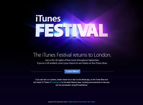 2013年5月30日、ジャスティン・ティンバーレイク、サーティー・セカンズ・トゥー・マーズ、ジャック・ジョンソン、ジェシー・Jらが、ロンドンで開催される今年の<iTunes Festival>にヘッドライナーとして出演することをアップルが発表した。