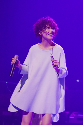 続いて登場したのは大塚 愛。矢井田の呼び込みにより登場した大塚は、ステージ下手で矢井田と両手を合わせると、柔らかな笑顔で1曲目の「One × Time」を歌った。「さくらんぼ」を歌っていた頃の可愛い印象とは違う、大人の女性の包容力を感じさせた彼女は、透明感のあるウィスパーな歌声でオーディエンスを包み込んだ。そして。彼女が歌詞と楽曲を作る上で大切にしている“自然に人の心を動かせる言葉”“言葉が作り出すグルーヴ”】という2か条を告げると、その2か条にピタリと当て嵌まるリスペクト曲だと、中島みゆきの「糸」と電気グルーヴの「Shangri-La」を紹介し、2曲続けて歌い上げた。ラストに、久々に届けられた自身のヒット曲「プラネタリウム」では、客席から大きな歓声が上がっていた。