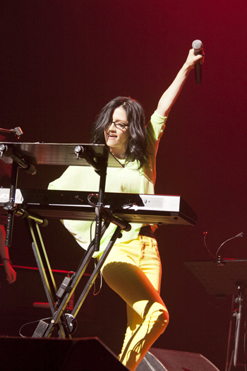 一青窈は、ステージ中央に、ペタンと座り込むと、大ヒット曲「もらい泣き」を披露。その独特な歌い姿は一瞬のうちにオーディエンスを魅了し、瞬間的にその場を彼女色に染めたのだった。そんな彼女が選んだカバー曲は、プリンセス・プリンセスの「M」と、岩崎宏美の「思秋期」。プリンセス・プリンセスは、昨年の復活ライヴにも足を運んだほどの大ファンで、髪を短くしたのも、奥居香(プリンセス・プリンセスのVo)に憧れてのことだと打ち明け、会場の笑いを誘った。一青窈らしさを感じさせなかった「M」はとても新鮮に響いた一方、阿久悠の作詞、三木たかしの作曲を、改めて素晴しいと感じさせた「思秋期」では、まるで彼女のオリジナル曲ではないかと錯覚させられたほど、素晴しく一青窈らしいステージを魅せてくれたのだった。