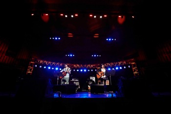 鳴り止まない拍手の中、アンコールに登場したのは、秦 基博。「かれこれ7年くらい待っていました。ようやく彼と一緒にやれる日が来たなと」と、同期の長澤知之を呼び込むと、会場は大歓声に包まれる。アコースティックギターで「帰れない二人」を披露。2人きりでステージ立つのは初めてということもあり、とても貴重なセッションとなった。