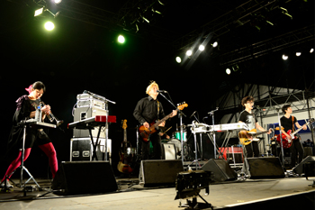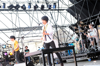 そして、最終日のトリをつとめたのは、くるりだ。吉田省念の脱退が発表されたばかりの彼らだが、岸田(Vo&G)、佐藤(B)、ファンファン(Tp& Key)の3人にサポートメンバーを加えた5人編成で、見せてくれたステージは素晴らしいのひとこと。「ワンダーフォーゲル」に始まり、「ばらの花」や「ロックンロール」などセットリストも強力だったが、何よりも、その細やか且つダイナミックで温かい演奏に胸を打たれる。音楽へのハンパない愛情が歌や音の随所に散りばめられている。「みんな、昼から遊んでるんですか? いっぱい食べた? いっぱい飲んだ?」と語りかける岸田は、ライトアップされた東京ゲートブリッジを見て「アーバンですね」と感慨深げ。巨大な会場の距離もライヴハウスのごとく縮めてしまうステージを繰り広げ、アンコールは「お祭りわっしょい」の大合唱。至福のフェスをみごとに締めくくった。