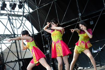そして、超満員、大歓声の中、メインステージに姿をあらわしたのは、蛍光イエローとショッキングピンクの衣装がヴィヴィッドなPerfumeだ。ヒットメーカー、中田ヤスタカの手による迫力のトラック、見る人を釘づけにする3人のシャープなダンスアクトは中毒性が高い。「今日、私たちがホントに見てほしいのは、この衣装の発色の良さ!」と、のっちが笑わせると、あーちゃんが「紅白で着るつもりだったんだけど」と裏エピソードを明かす。「ワンルーム・ディスコ」、「エレクトロ・ワールド」、「チョコレイト・ディスコ」など強力曲を次々に披露。最新シングル「Magic of Love」ももちろん盛りこまれ、集まった人たちを沸きに沸かせた。