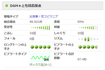 May J.が自らDAM★ともで歌唱し、その点数と分析結果を公開している。