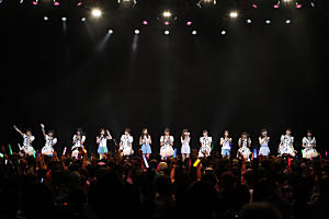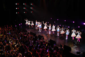 トップバッターはエビ中。テレビ東京ドラマ『ヴァンパイア・ヘヴン』オープニングテーマの新曲「禁断のカルマ」、2ndシングルのたむらぱんプロデュース「大人はわかってくれない」、インディーズ絶盤ベスト収録の「約束」を立て続けに披露。その後東京女子流がステージで合流し、東京女子流の2ndシングルで、みんなで踊れるハッピー・ソング「おんなじキモチ」を一緒にパフォーマンスした。