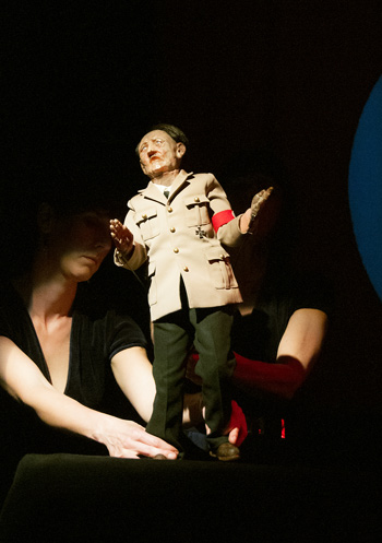 この“人形カラオケ”は、フランク・シナトラの「マイ・ウェイ」からT.レックスの「チルドレン・オブ・ザ・リボリューション」などのヒット曲を替え歌にして、オリジナルで撮り下ろしたカラオケ映像をバックに人形に歌わせるという、ユニークなもの。ラテックス製で精巧にコミカルに作られた人形ヒトラーが、ドイツの国民的シンガー、ヘルベルト・グレーネマイヤー(Herbert Grönemeyer)のヒット曲「Flugzeuge in meinem Bauch」を熱唱すると、観客は爆笑! 単にコミカルなだけではなく、過去の時代への反省とドイツ人に内在している全体主義的な国民性への自己批判を含む、ウィットに富んだネタだ。