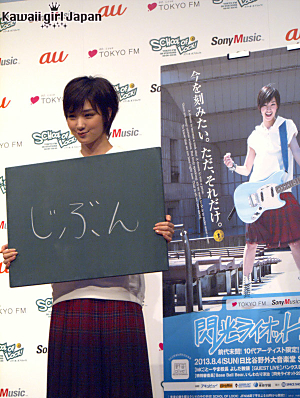 <閃光ライオット2013>の開催にあたり、剛力が出場者へのメッセージとして黒板に書き上げたキーワードは「じぶん」。1年前にはまだ10代だった自分自身を振り返りつつ、「じぶんのままをぶつけて欲しい。10代の自分はその時にしかぶつけられないし、自分でも知らない新しい自分を見つけてもらえたら嬉しいです。何でひらがなにしたかというと、自分の色を自分で染めていってほしいから。漢字にしてしまったらそこに囚われてしまうかなと思ったので」と先輩らしいコメントを残した。