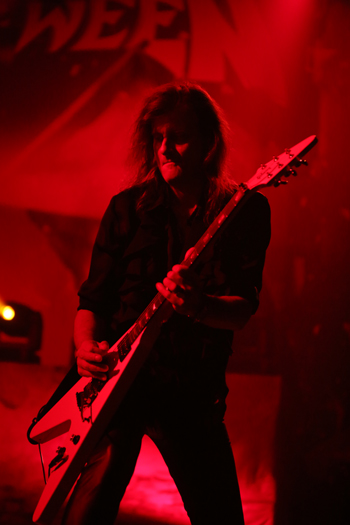 高速チューンも多かったが、後半のHELLOWEENはただ突っ走るだけではなかった。「Live Now!」では、客席を左右半分ずつに分け、別々のパートをかけ合いで歌わせ、どちらが声が大きいか競わせるという、国内アーティストでよく見かけるようなフレンドリーなコール&レスポンスもあった。また、サシャがスタンドに据え付けられたアコースティック・ギターを爪弾いて始まった切ないバラードの「Hold Me In Your Arms」とへヴィな「If I Could Fly」を続けて、じっくり聴かせる場面も作っていた。そして最後は、「Hell Was Made In Heaven」、そして「Power」と、HELLOWEENらしく爽快な疾走感あふれるナンバーで再び加速。重い曲が続いた後だけに、客席の盛り上がりもここで一気に爆発したようで、それまで比較的落ち着いて聴いていた後方のオーディエンスもジャンプを繰り返していた。