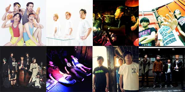 ▲写真 左上より右下:PAN / SABOTEN / STOMPIN’ BIRD / SECRET 7 LINE / THE CHERRY COKE$ / OVER ARM THROW / SHANK / ガガガSP。