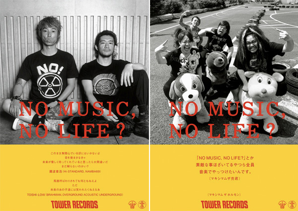 タワーレコードの「NO MUSIC, NO LIFE?」ポスター最新版に、マキシマム ザ ホルモン、難波章浩×TOSHI-LOWが登場。このポスターは6月17日よりタワーレコード全店およびTOWERmini店頭にて順次掲載される。