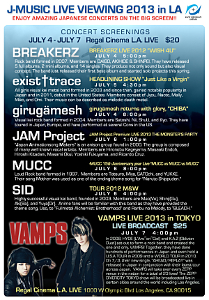 このイベントは2013年7月4日~7月7日の期間に開催され、MUCC、 girugamesh、JAM Project、SID、BREAKERZといった海外で人気の高いバンドたちの最新ライブDVD映像が紹介されるほか、7月7日にはVAMPSのライブ生中継も実施される。