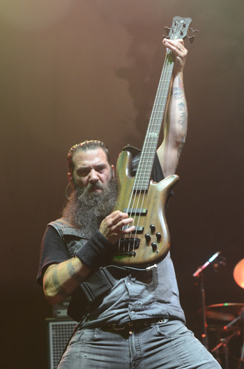 先頃お届けしたSLIPKNOTのクラウンとのインタビューに続き、今回は<OZZFEST JAPAN 2013>の2日目に出演したSTONE SOURのインタビューをお送りする。取材に応えてくれたのは、ギタリストのジョッシュ・ランド。これまた短い時間枠ではあったが、そのなかで彼は『HOUSE OF GOLD&BONES PART1』『HOUSE OF GOLD&BONES PART2』と連作で発表されたコンセプト・アルバムに関することのみならず、彼自身の音楽的背景についても語ってくれた。取材現場は公演当日のバックステージ。壁の向こうからは微かにMUCCの演奏が聴こえてくる。また、文中、上記の2作品の表題については『PART1』『PART2』と表記させていただくことを、あらかじめおことわりしておく。