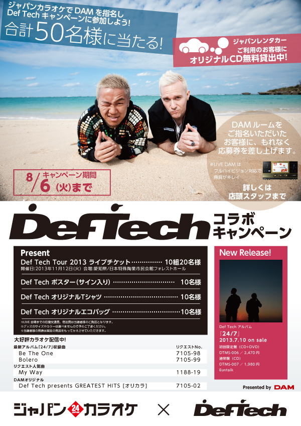 Def Tech カラオケ&レンタカー店でサマーキャンペーンをスタート!