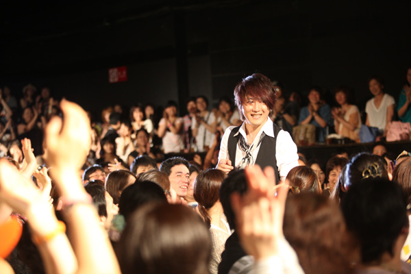 客席後方から登場すると、しょっぱなからファンの興奮もはじけ、オープニングからソロになってからの代表曲とも云える「RABBIT-MAN」でファンとの合唱がはじまった。ちなみにファンクラブの名称も「RABBIT-MAN’s」である。