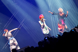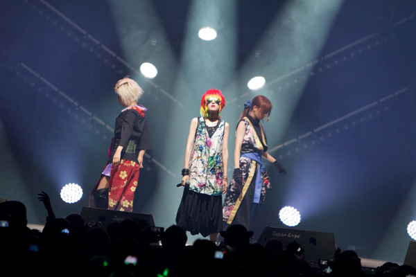 現地時間、4日午後2時よりライヴはスタート。会場に設置されたスクリーンを通じ、楽屋からの映像で登場。「Leia」(音源未発表)、「antinotice」「感弩Reduction」とアッパーチューンを連続して歌う。スクリーンには彼女のイラストをふんだんに使ったPVが同期し、彼女の内面からの衝動を聴覚と視覚の両側から伝える、誰も味わったことがない秋 赤音にしかできないパフォーマンスに興奮状態の会場。