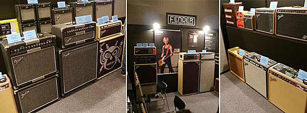 ▲新製品のMacheteシリーズやMustang V.2はじめFenderアンプがずらりと並ぶコーナー。試奏する来場者が絶えない大人気コーナーだ。
