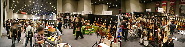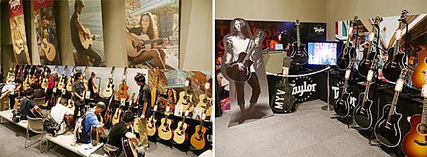 ▲数多くのモデルが揃うTaylorブース。最新限定モデルからショーモデルまでが展示販売。MIYAVIの特設ブースには彼が実際にライブで使用しているT5の展示や記録映像、ミニパネル展、等身大パネルなども。