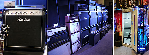 ▲Marshallアンプを多数用意したヤマハミュージックジャパン。新製品のSL5を中心に、「フルスタック爆音試奏」ができる防音室も用意。