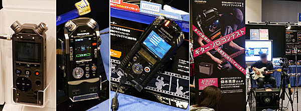 ▲オリンパスは楽器の練習をサポートする96kHz/24ビットリニアPCMレコーダーLS-12、マルチトラック対応LS-100をはじめとしたレコーダー、ハイビジョン録画対応のLS-20Mなどを展示。ブース内ではギターソロコンテストも実施。