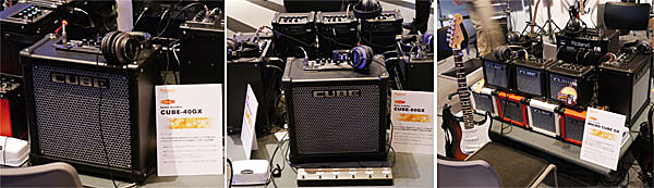 ▲イベント前日に発表された新ギター・アンプCUBE GXシリーズ(20W/40W/80W)、MICRO CUBE GX(ブラック、ホワイト、レッド)が試奏できる状態で数多くスタンバイ。いずれもiPhoneを接続してセッションが楽しめるi-CUBE LINKを搭載。