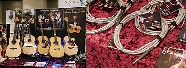 ▲エースケーのブースでは、高い耐久性と原音を損なわない音質で注目のDAVID LABOGAのケーブル、オーストラリアのMaton Guitarsのアコースティックギターを展示。