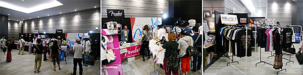 ▲ホール内のギター関連グッズの販売に加え、ロビーにはTシャツなどのアパレルやアクセサリー、書籍やCDなどの物販ブースも。