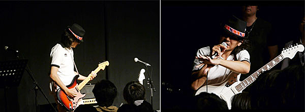▲Kenは、自身のシグネイチャーモデルKen Signature Series Stratocaster “Galaxy Red”の購入者イベントに登場、予定外の演奏披露で会場を沸かせた。ステージ上に招かれたファンに、ギターの弾き方の初歩から、サウンドメイクまで真摯かつやさしくレクチャー。