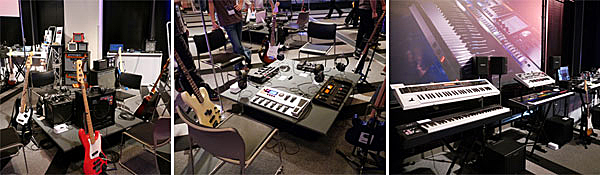 ▲GTシリーズをはじめとするフロアタイプのエフェクターやアンプも弾き放題。シンセやV-Drums、SONARなどのPC関連商品なども多数展示。