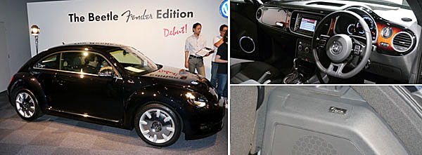 ▲FENDER SHOWCASEの一角にはFenderとVolkswagenのコラボによるThe Beetle Fender Editionが登場。2トーンのウッドデザインSunburst採用のインテリアやスピーカーにもFenderならではのフィーチャーが見られる。