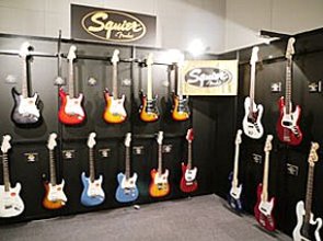 ▲SquierはFSR Vintage Modifiedなどの限定モデルをずらりと展示。
