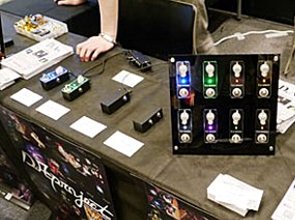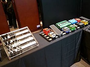 ▲とてもコンパクトなブースターのD.A-Boosterはじめバッファーやジャンクションボックスを展示したD.A-Project。