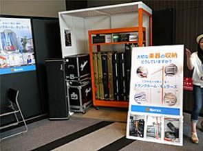 ▲楽器の収納にトランクルームの使用を提案するトランクルーム・キュラーズ。24時間出し入れ自由、セキュリティ&空調システムを完備。