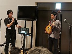 ▲新製品アコースティックギター用アンプAC-40のデモステージ(写真左)。ツイン・スピーカー搭載、ステレオ・コーラス/リバーブ内蔵、5.3kgで持ち運びも容易。BOSSコンパクトエフェクターワークショップでは、ニューモデルの特徴やサウンドメイクの技を披露(中)。GR-55を使ったギタリスト向けのSONARセミナーも実施(右)。
