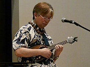 ▲VOXのエレクトリックウクレレ“ELEUKU”のセミナーはミニステージで開催。モダン・ハワイアングループ、アイランドウインズのリーダー海田明裕が演奏を披露。