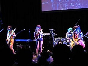 ▲本物のギターを使ったゲーム「ロックスミス」が人気を集めたユービーアイソフト。誰もが知ってる名曲を多数収録、ゲームでギターが上達できる。ミニステージのデモも多くの来場者を集めた。